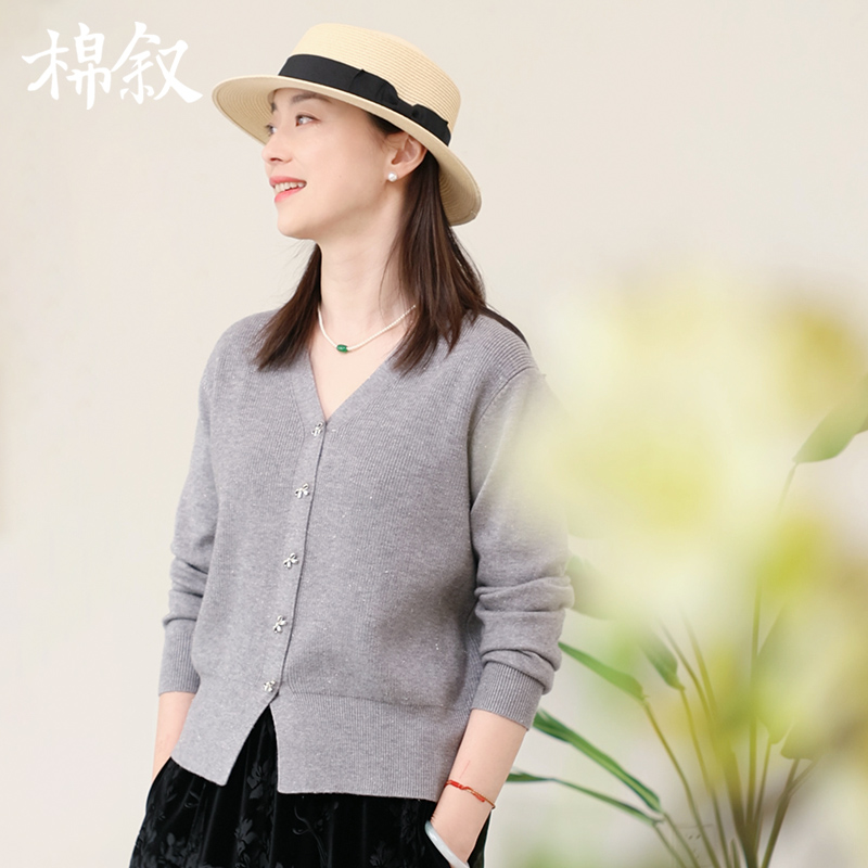 棉叙2025春装新V领纯色针织开衫宽松显瘦气质毛衣外套女24685