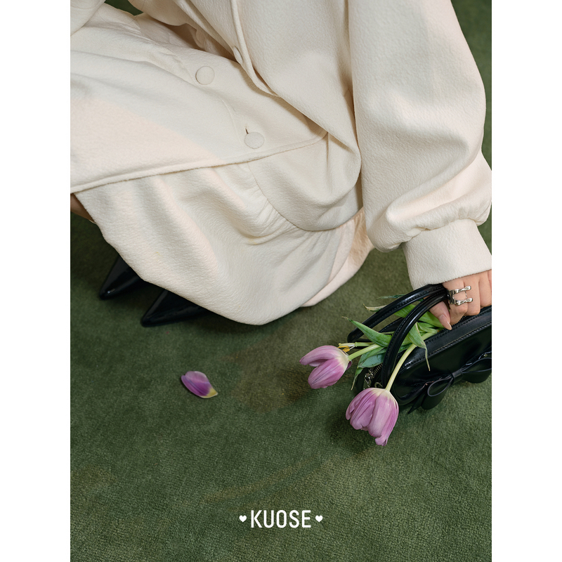阔色杏色气质温柔连衣裙长袖2025秋冬季穿搭新款女装花苞裙短裙子