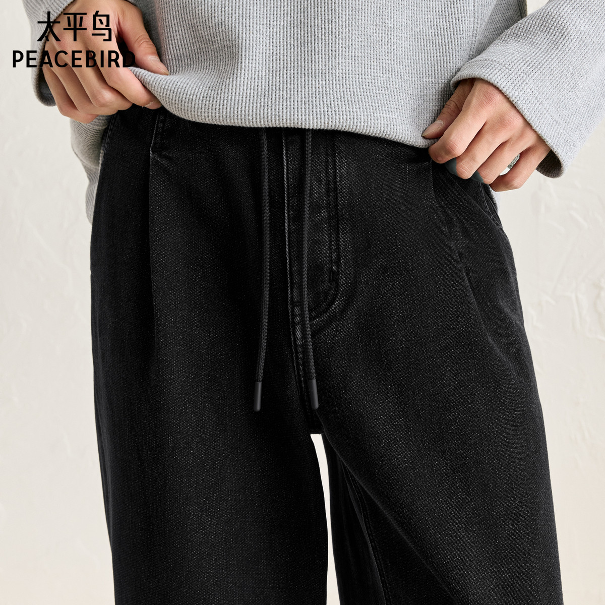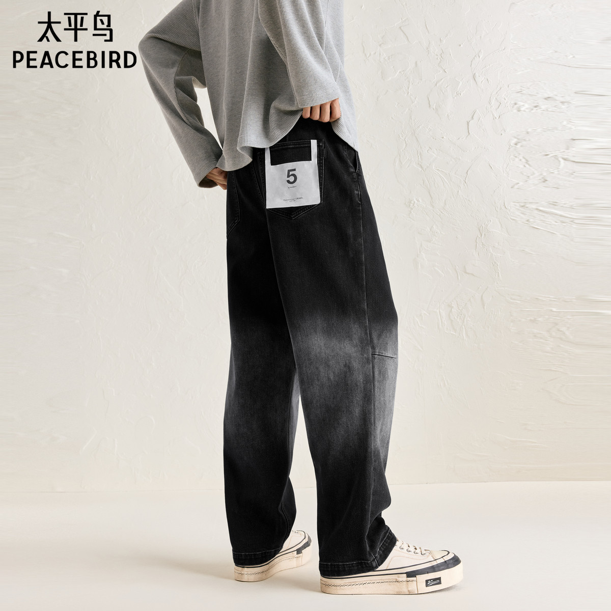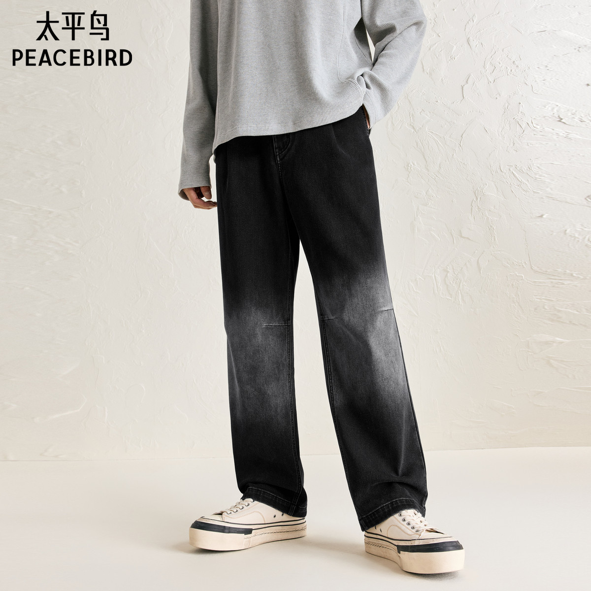 太平鸟男装牛仔裤秋款美式宽松直筒休闲裤渐变色水洗潮牌牛仔裤