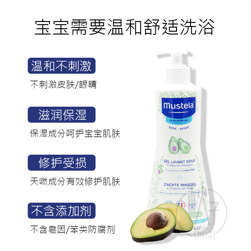 新日期 法国mustela妙思乐婴儿贝贝儿童洗发水沐浴露二合一500ml