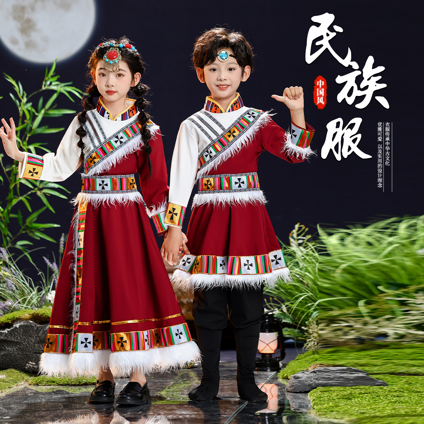 儿童藏族演出服男女童藏裙藏袍