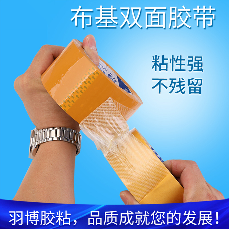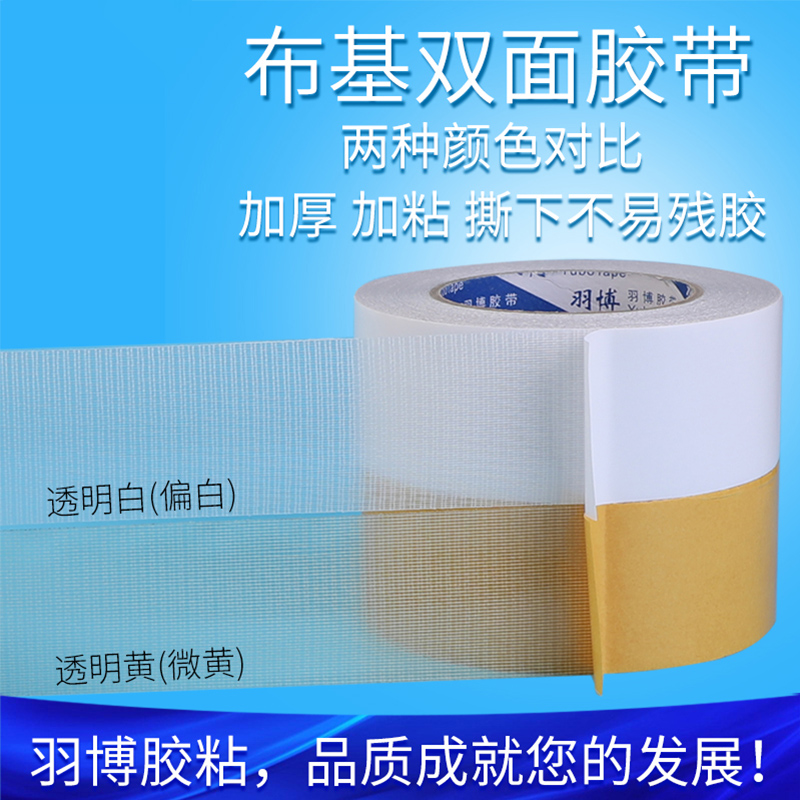 羽博布基双面胶带粘布强力双面胶布基胶带高粘度无痕气球胶带不留痕墙地毯双面胶地板超粘半透明网格地毯胶