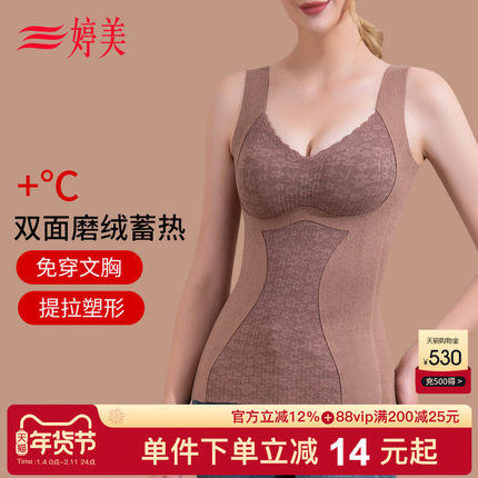 婷美秋冬加绒保暖背心免穿文胸无痕打底上衣塑形收腰收腹保暖内衣
