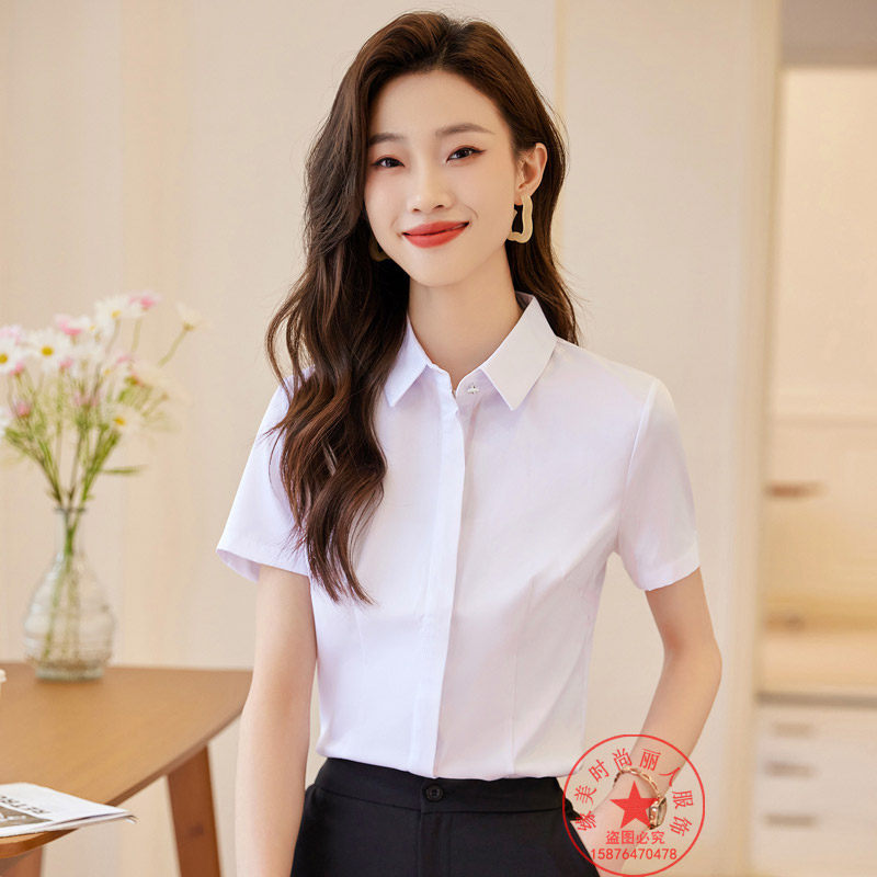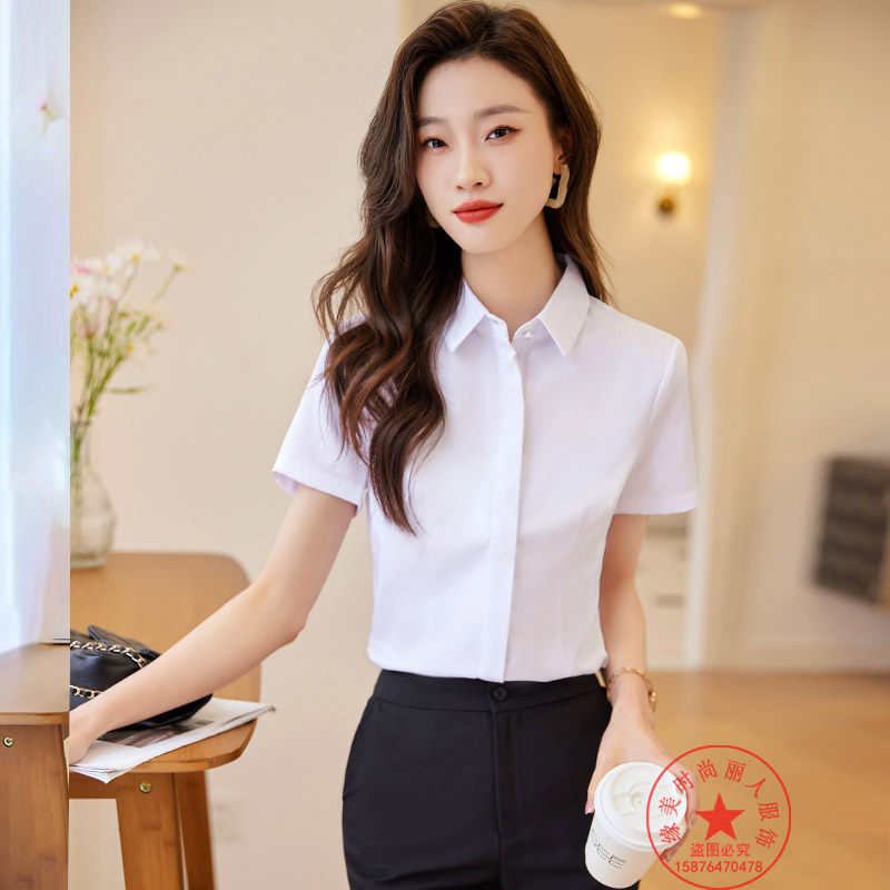 白色短袖衬衫女夏季2024新款职业套装气质正装工作服高端衬衣工装