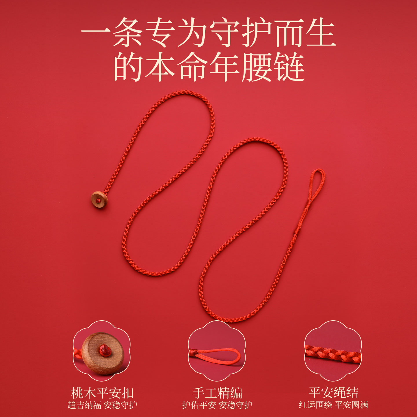 2026马年本命年红腰带桃木平安扣太岁化护身符红绳腰链女红色腰绳