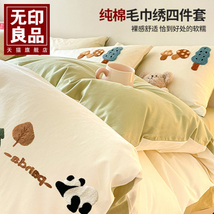 无印良品少女系ins风刺绣毛巾绣纯棉水洗棉被套四件套床单三件套