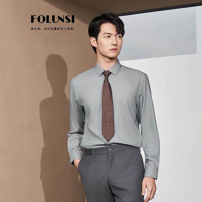 佛伦斯FOLUNSI新款男T恤春秋款商务防污时尚衬衫领高级感长袖上衣