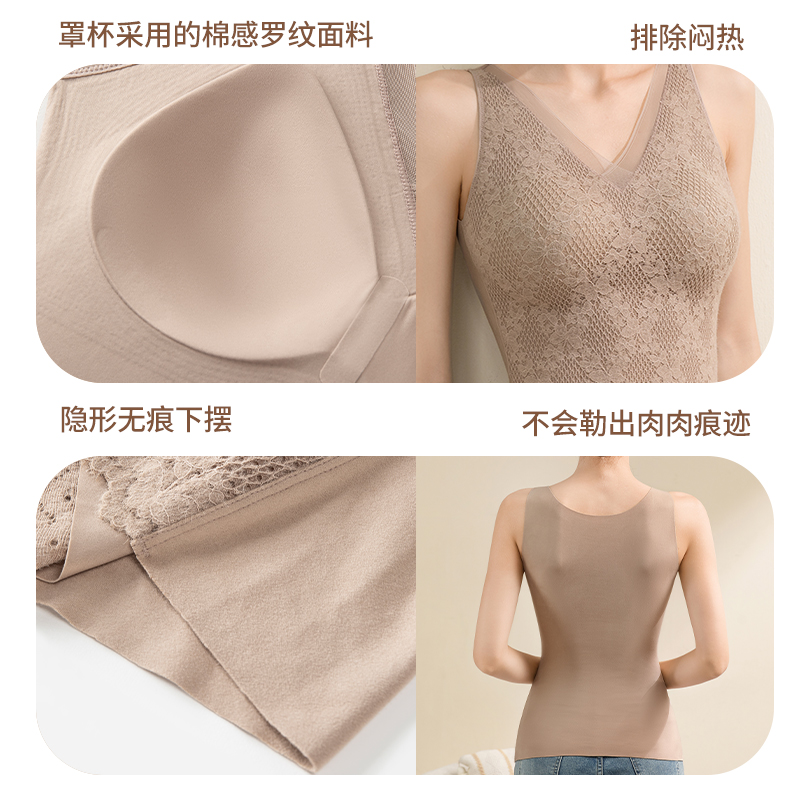 婷美蕾丝镂空带胸垫保暖背心