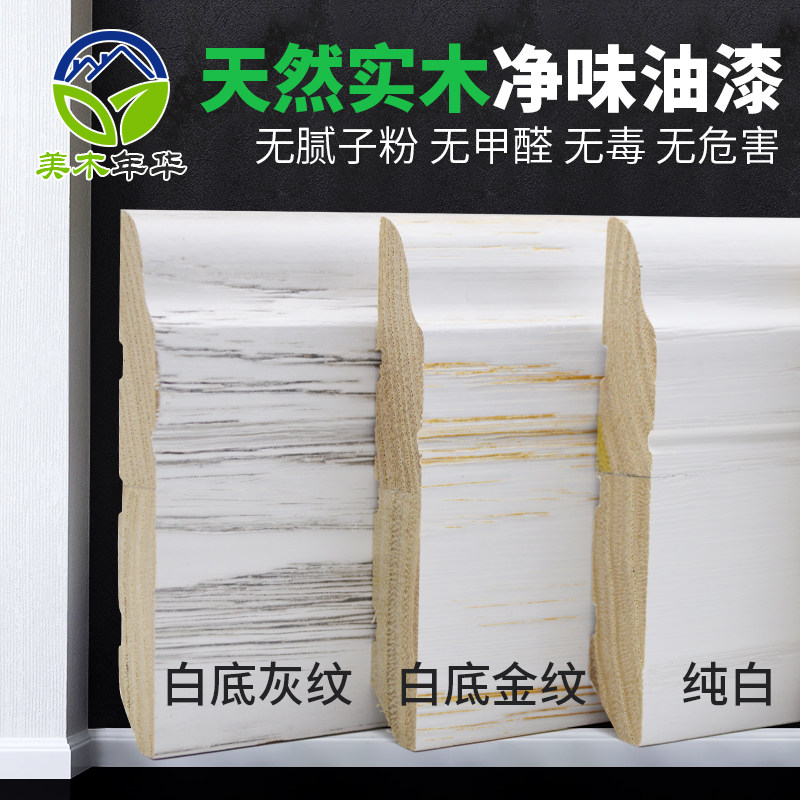 橡木北方家用实木踢脚线纯实木白色开放漆8cm木头T脚线地板踢脚板
