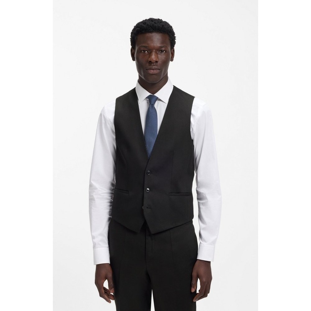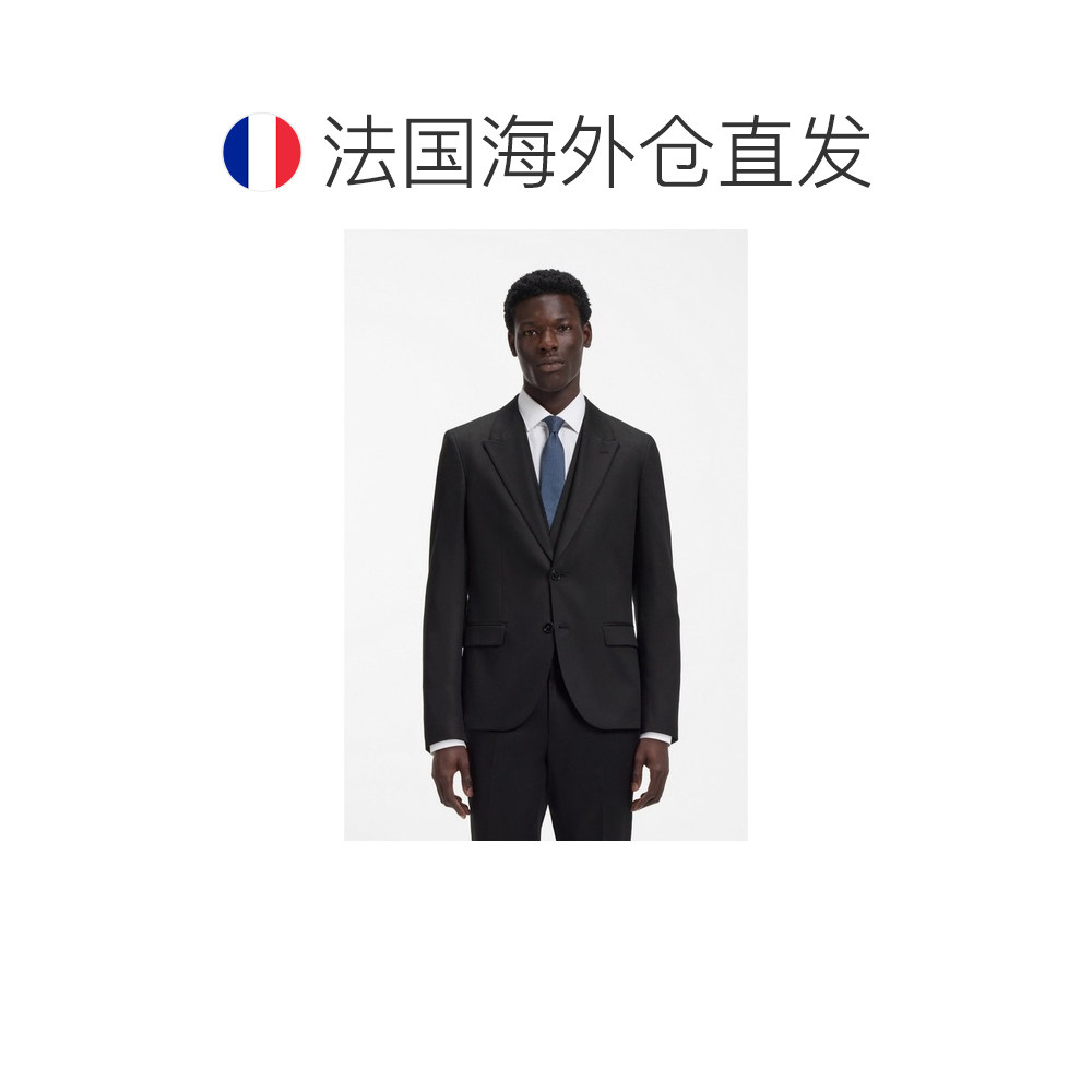 自营欧洲直邮Hugo Boss 男士黑色莱赛尔纤维三件套西装套装
