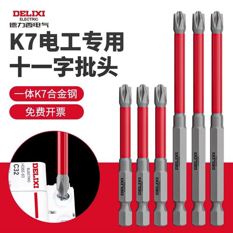 德力西K7电工专用批头十一字螺丝刀头插座空开面板手电钻专用工具