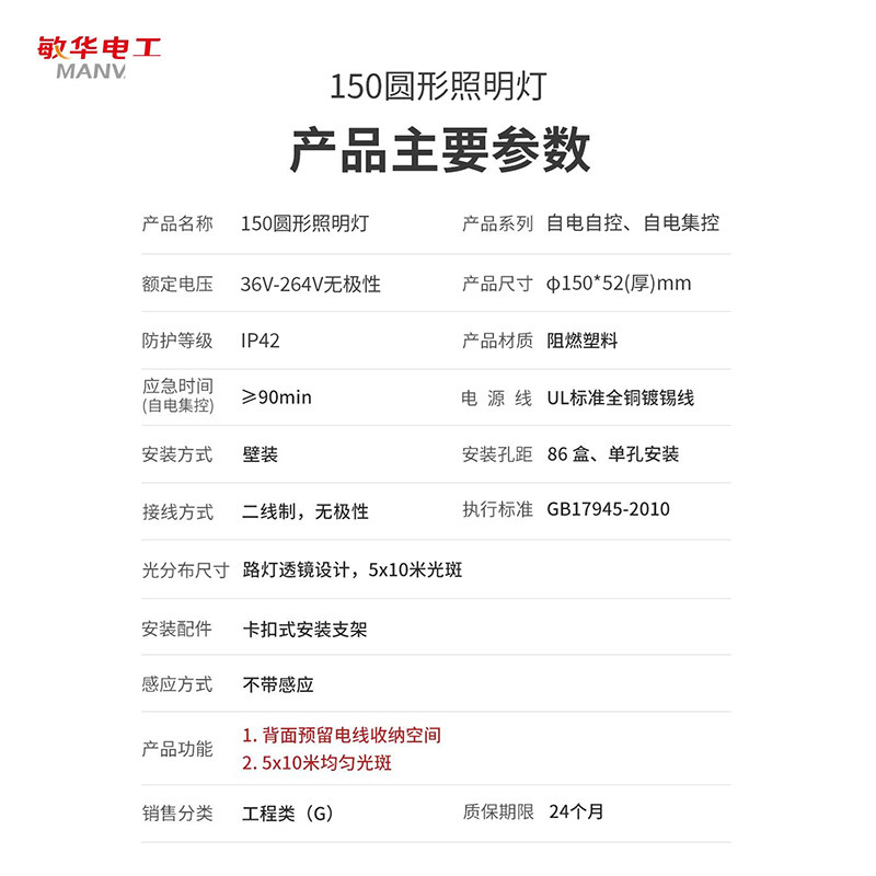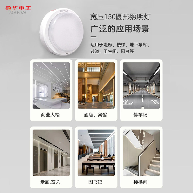 敏华通吃款150吸顶灯消防应急灯圆形应急照明36v264v兼容吸顶壁挂