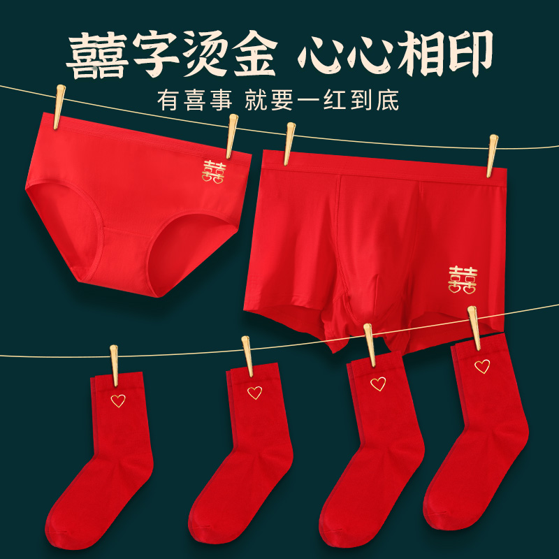 花花公子红色内裤情侣结婚内衣新娘新郎一对男女新婚纯棉袜子套装