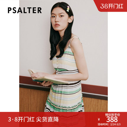 诗篇夏撞色条纹真丝桑蚕丝吊带裙连衣裙