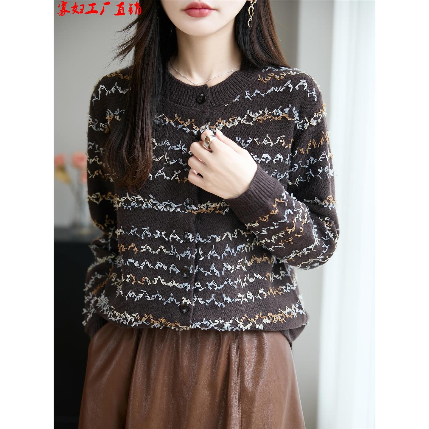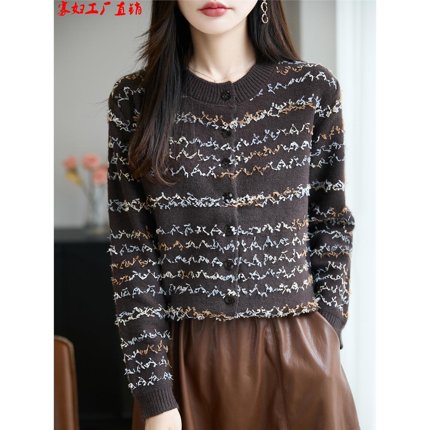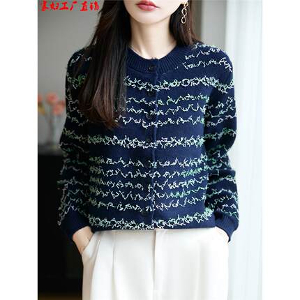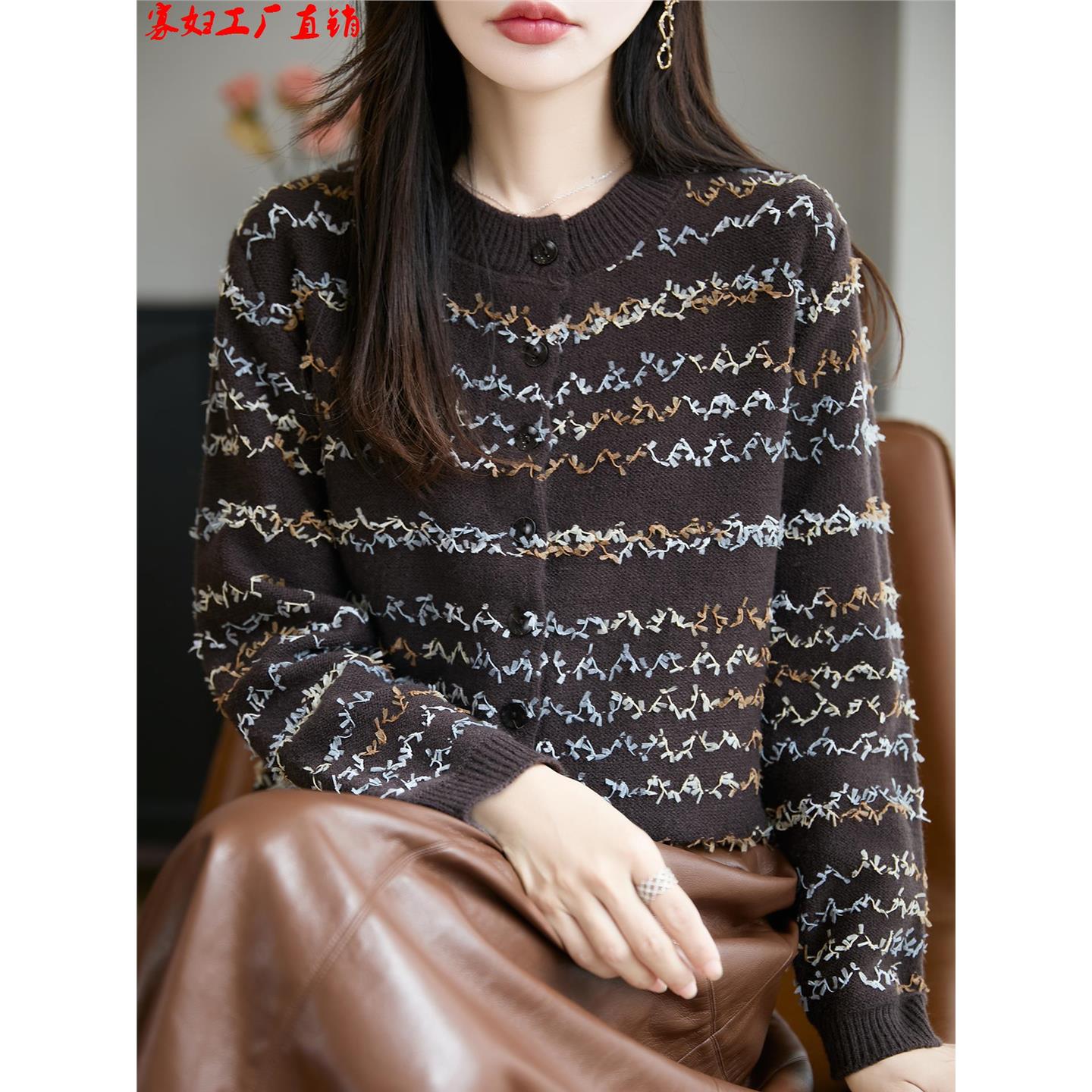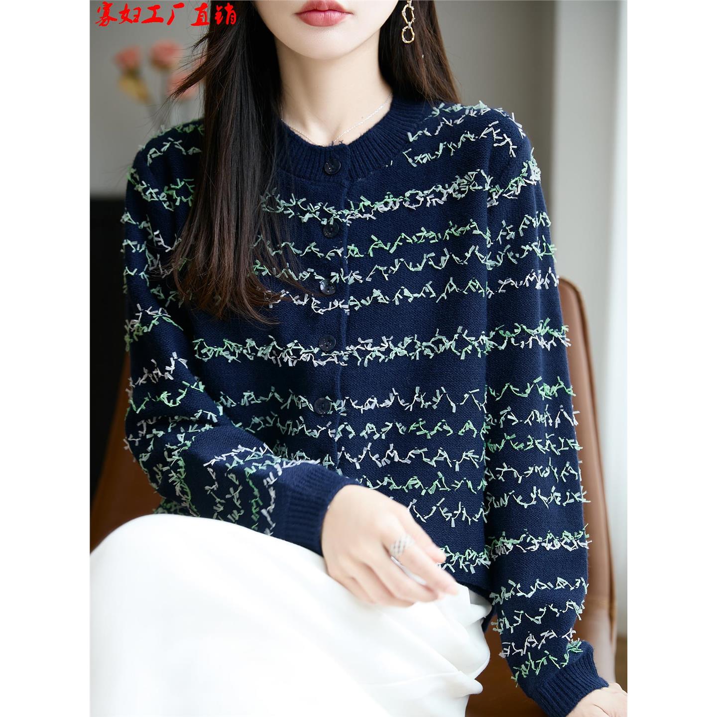 爆款法式加厚高级感条纹针织开衫女宽松显瘦百搭长袖毛衣保暖上衣