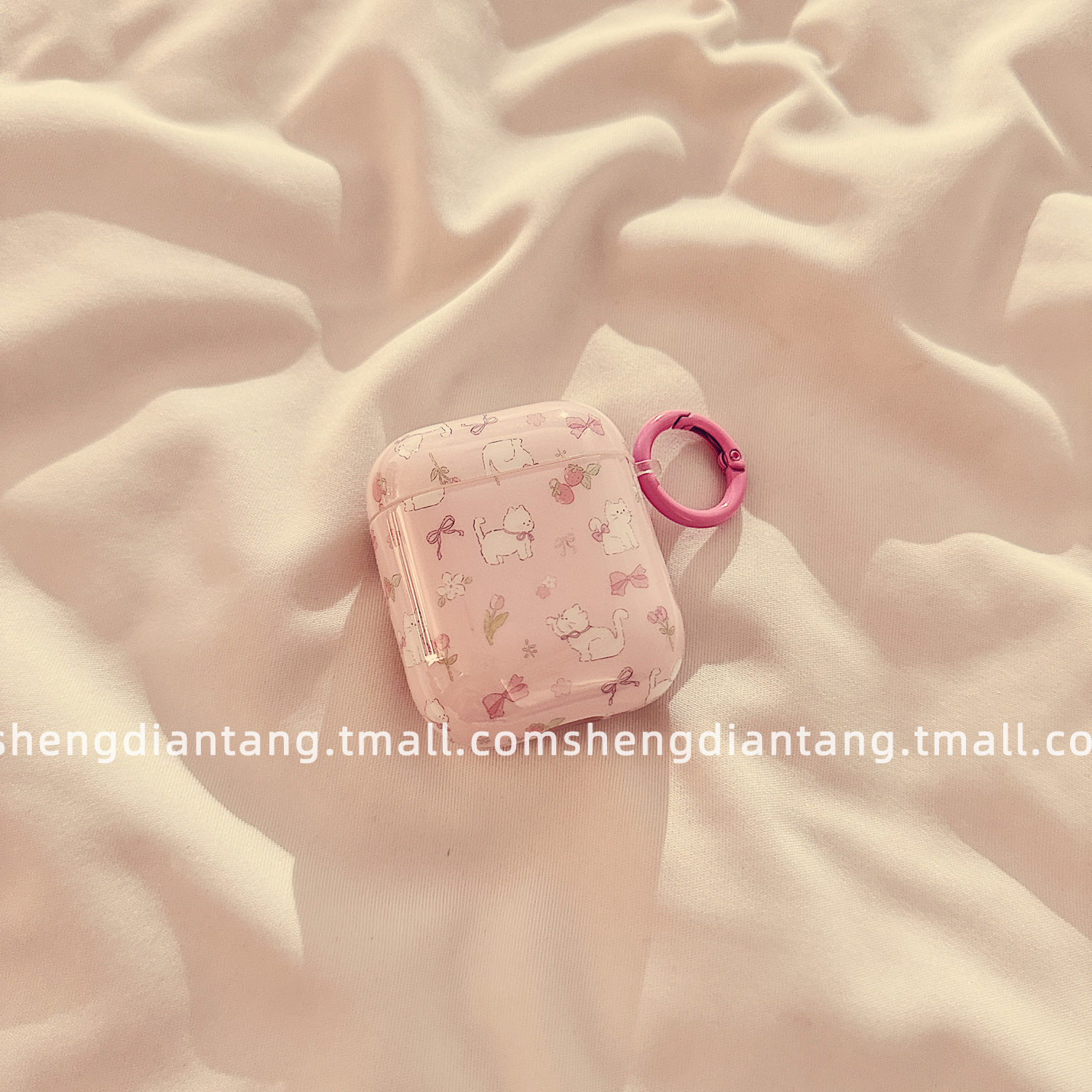 粉花朵蝴蝶结猫咪适用苹果耳机套