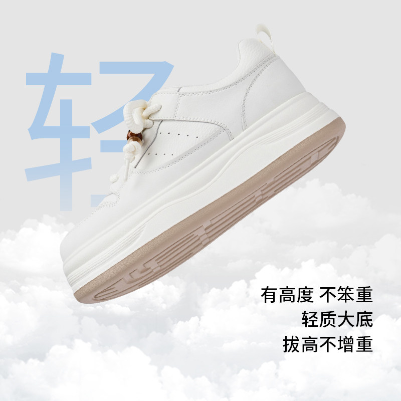 热风百搭小白鞋女2026年春季新款增高厚底板鞋轻便休闲鞋面包女鞋