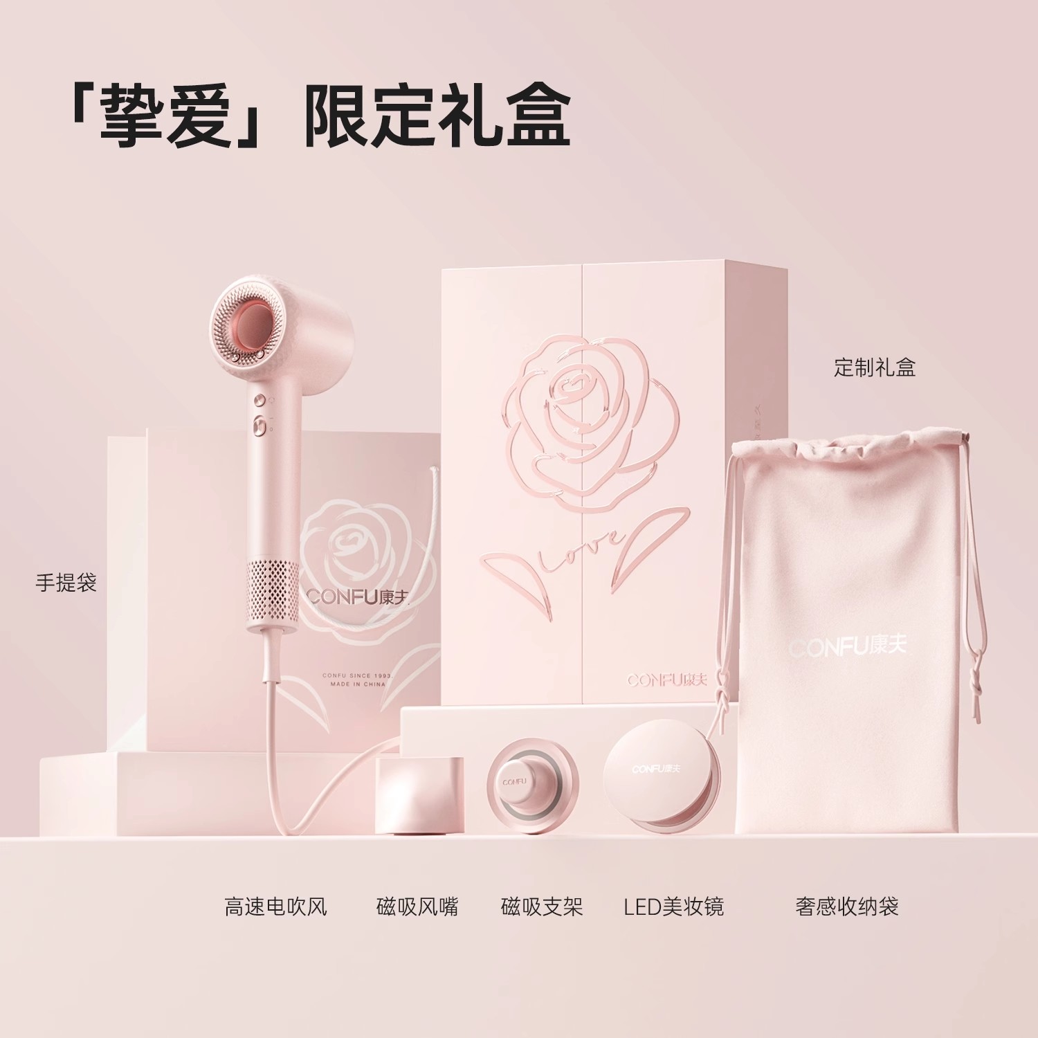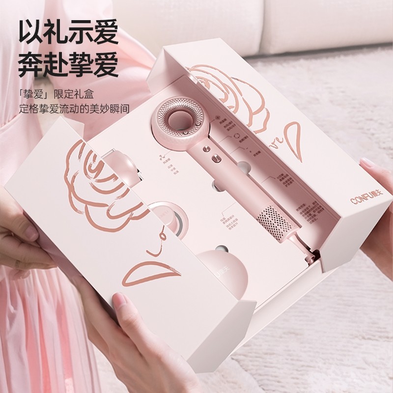 CONFU康夫高速电吹风机家用大功生日结婚中秋节礼物粉金礼盒率F9