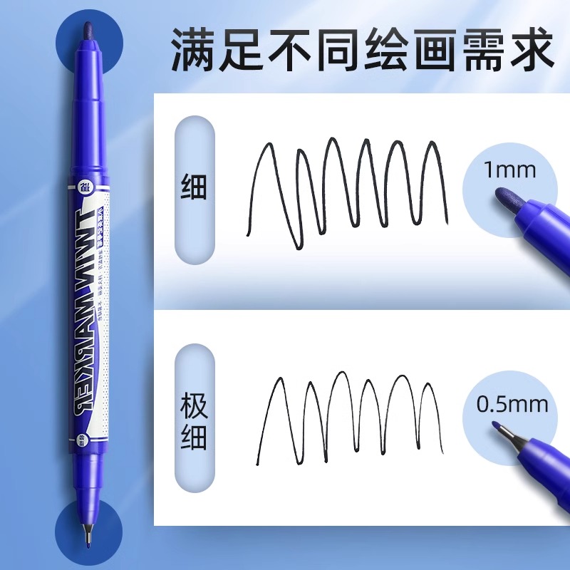 晨光赛美v7403小双头勾线笔美术专用速干油性防水记号笔黑色幼儿园小学生儿童马克笔绘画描边笔小头快递标记