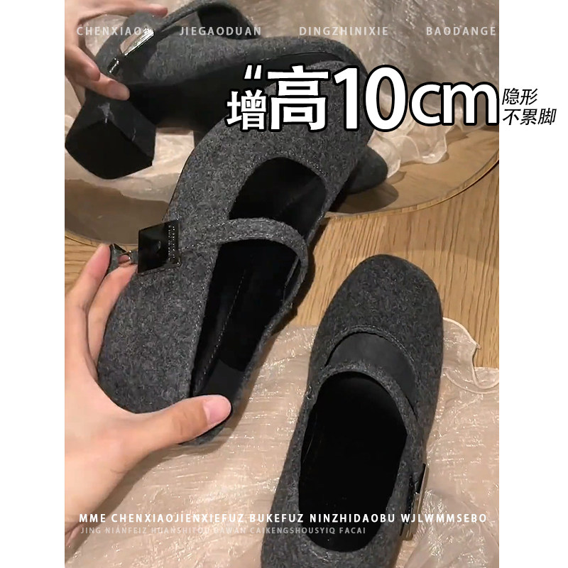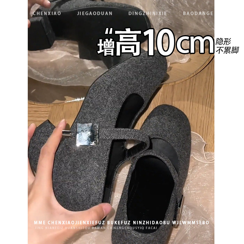不累脚!小个子内增高单鞋10CM玛丽珍鞋2026秋冬高跟鞋一字带女鞋