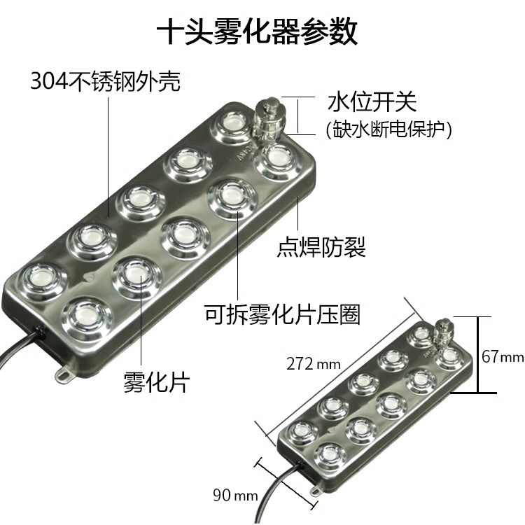 超声波十头雾化头工业加湿器大雾量水池景观起雾造雾器假山雾化器
