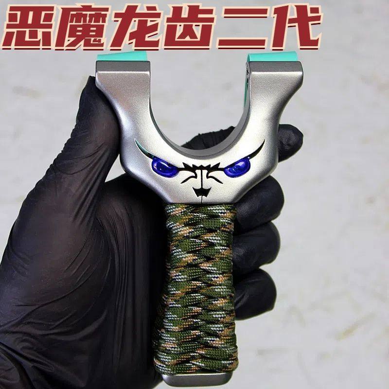 全新二代龙齿暗扣恶魔不锈钢弹弓反曲扁皮筋卡扣大威力高精准户外