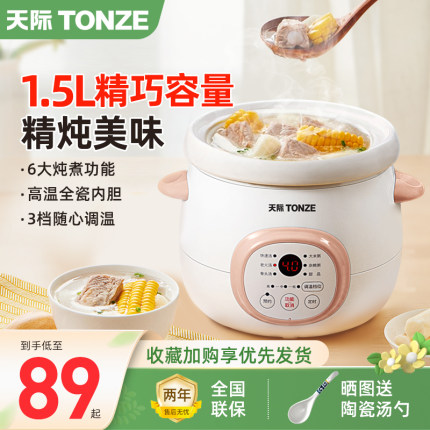天际电砂锅迷你小炖m锅陶瓷炖盅全自动智能熬粥煲汤锅家用煮粥神