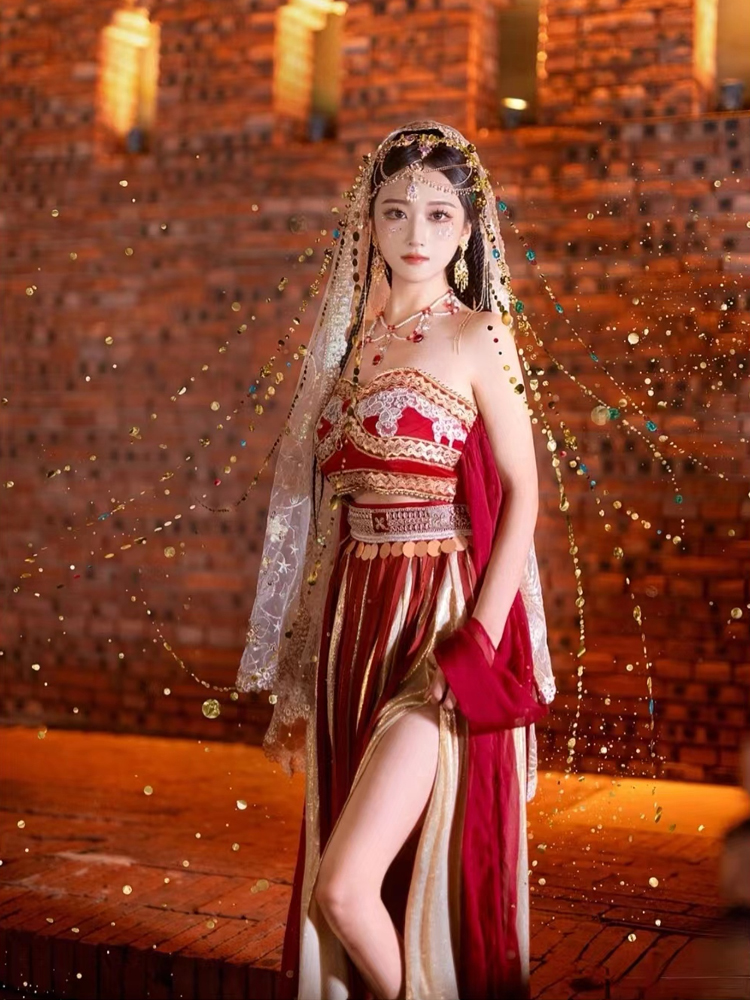 敦煌飞天汉服2024新款异域风情西域公主舞蹈服套装旅游拍照演出服