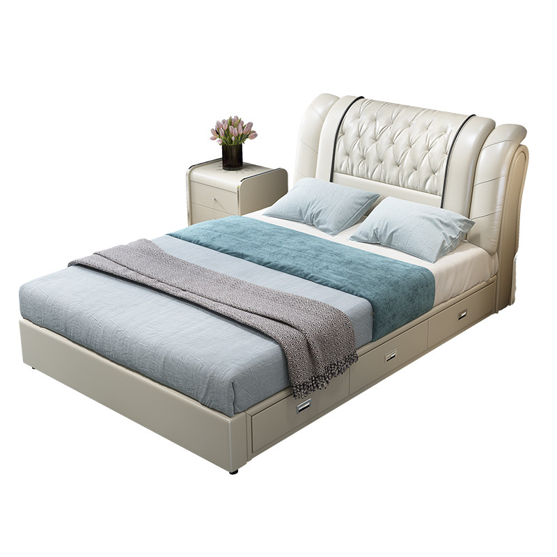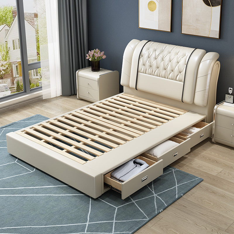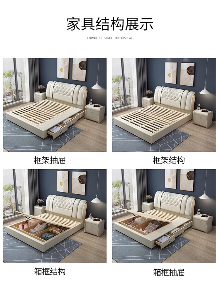 小户型带储物榻榻米儿童软包皮床