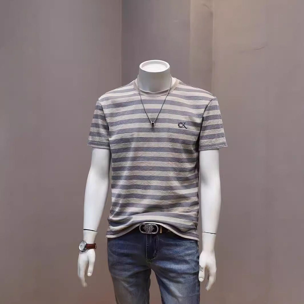 2024港风新款夏季条纹T恤ins短袖新款半截袖男装夏装半袖POLO控