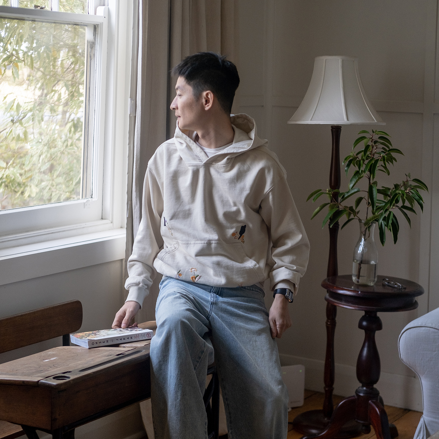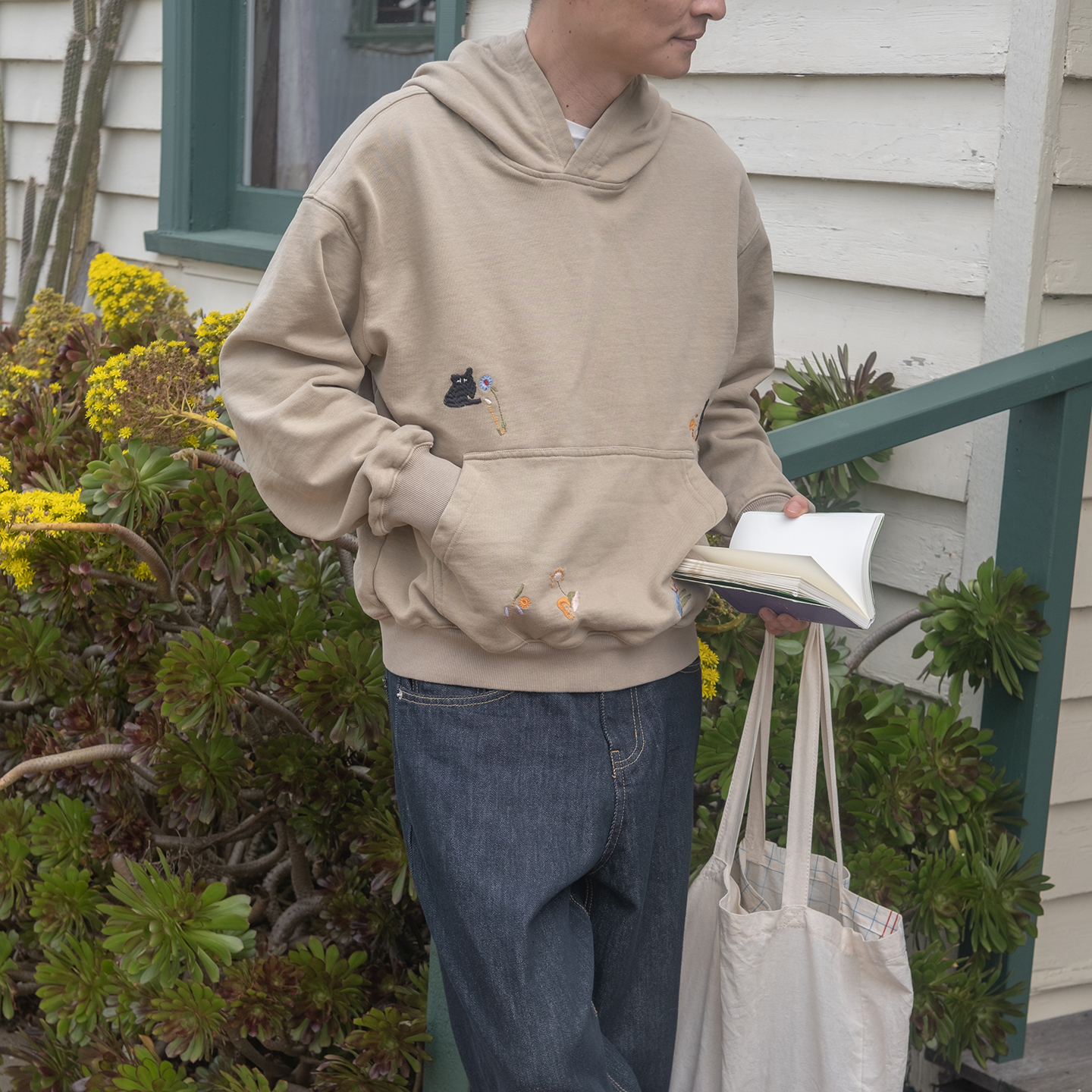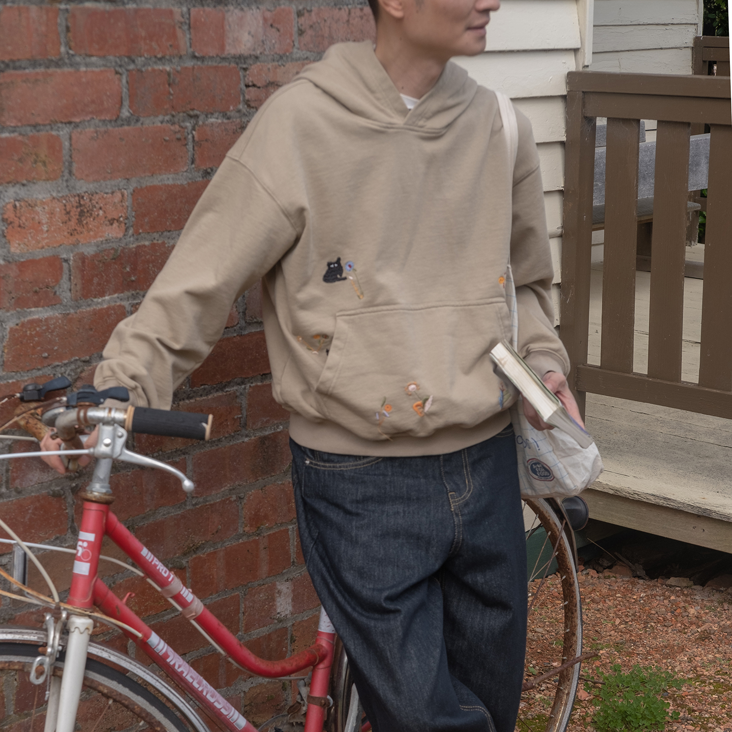 【秋天的猫抓板】几立 爬满猫咪与花朵的刺绣连帽卫衣