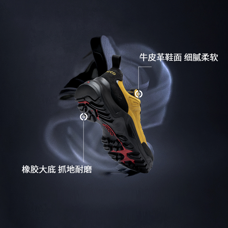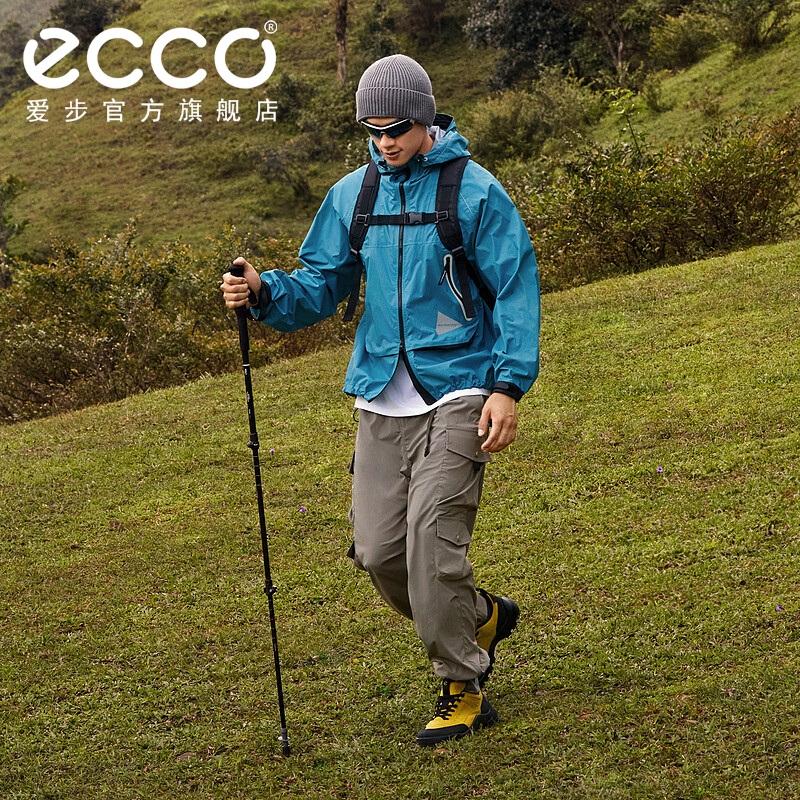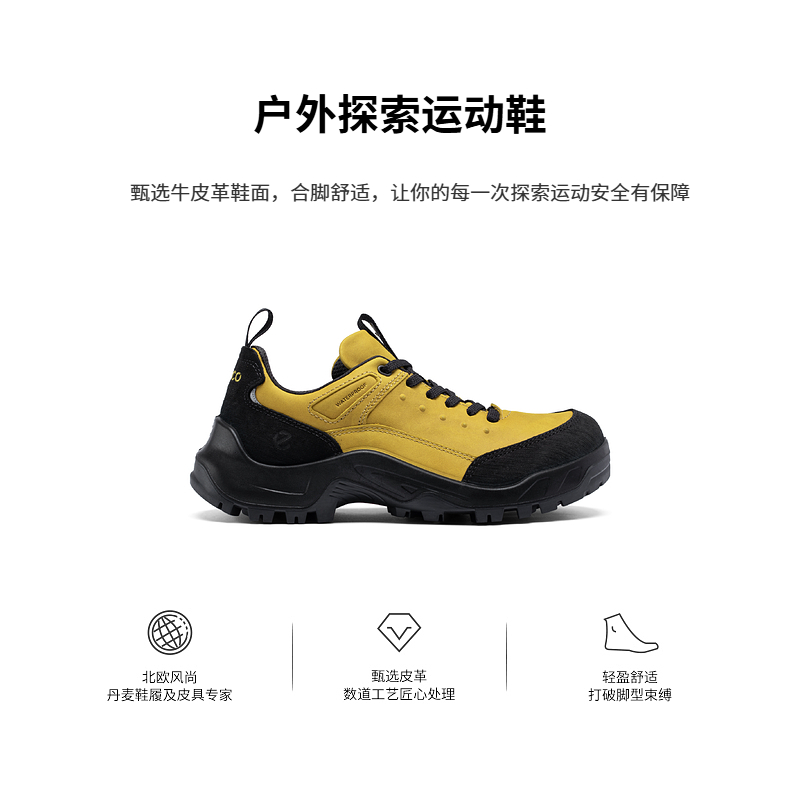 ECCO爱步登山鞋男 轻盈减震牛皮耐磨户外跑鞋 越野822354