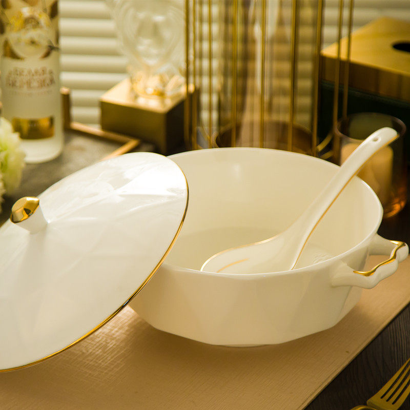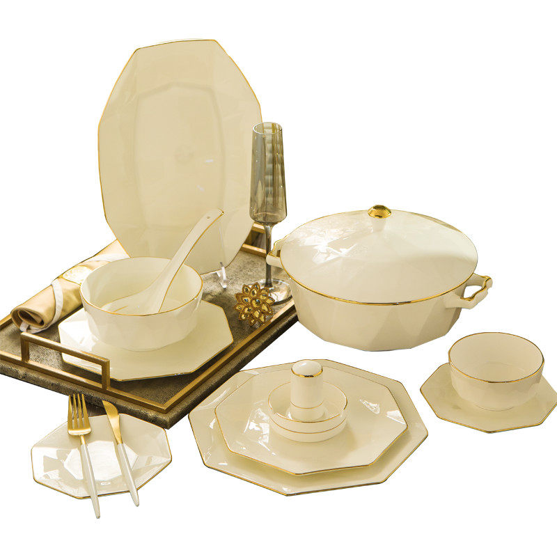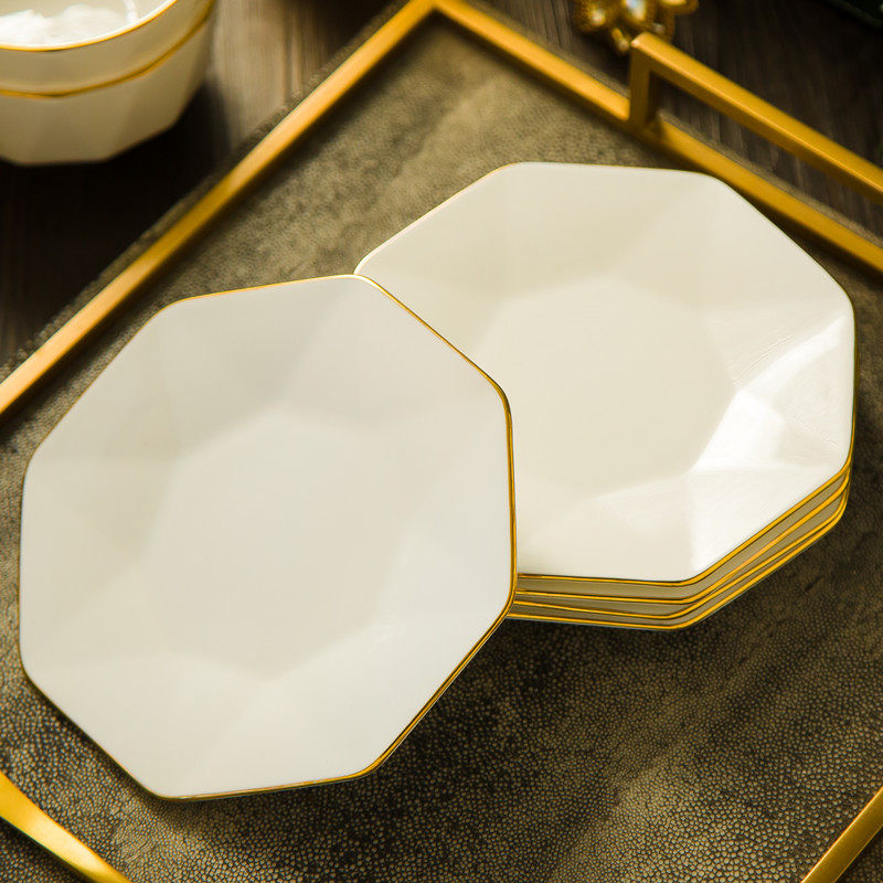 DIY单品骨瓷饭碗盘勺子组合餐具高档奢华欧式陶瓷器碗碟套装家用