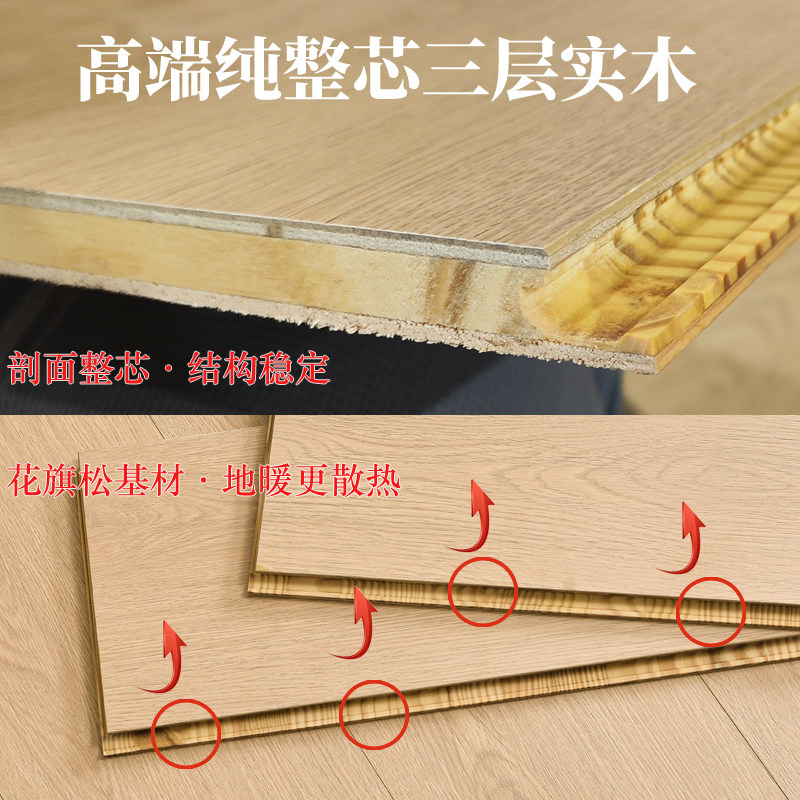 原木奶油风整芯环保三层实木地板