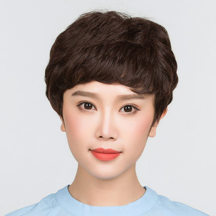 假发女 短发 中年女性假发套真人发丝短卷发妈妈黑色发套遮挡白发