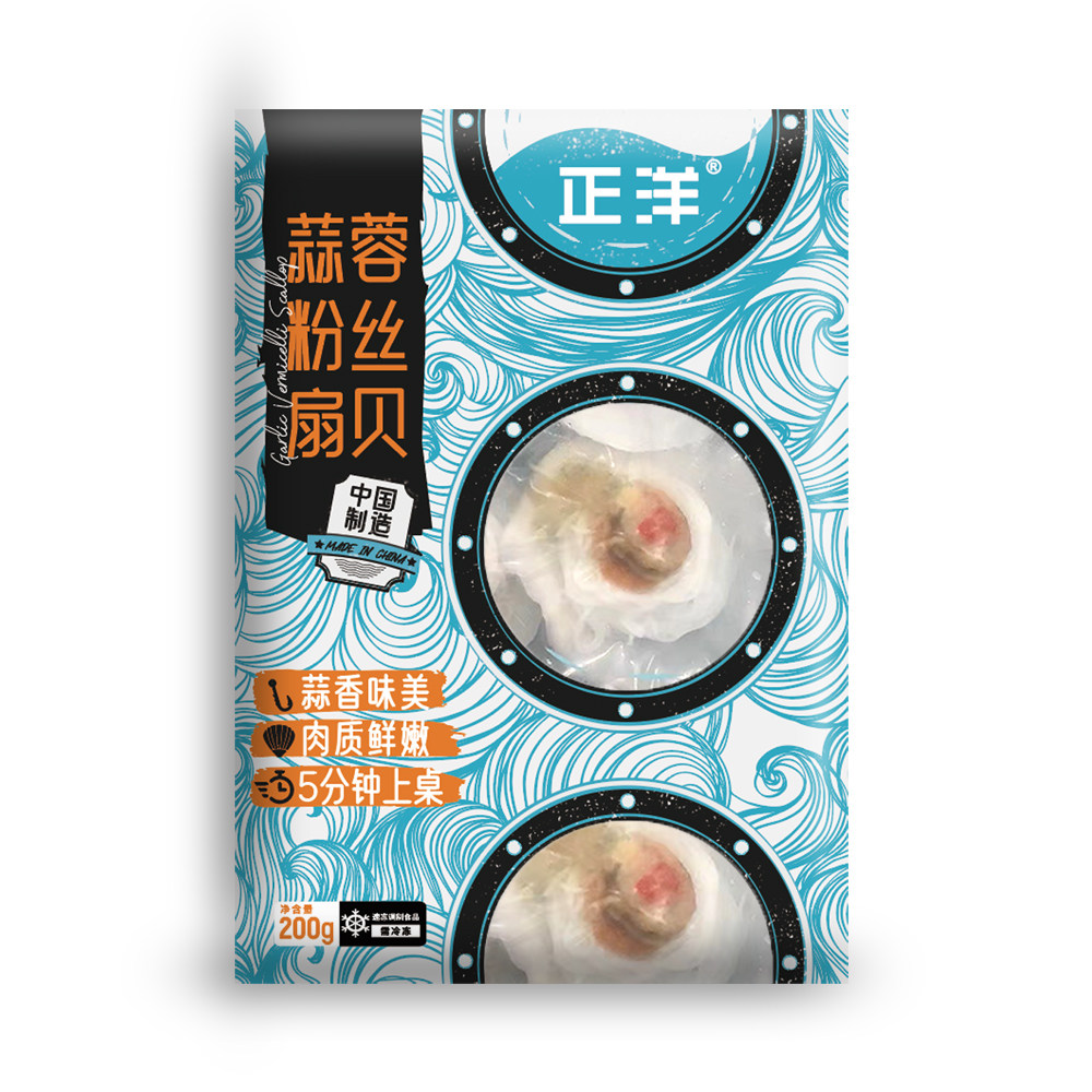 正洋蒜蓉粉丝扇贝200g/份 6只/份海鲜水产贝类烧烤水产蒸煮即食
