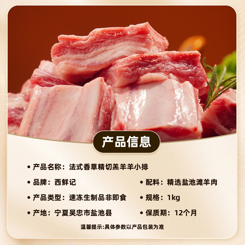 臻选 西鲜记宁夏盐池滩羊法式香草精切羊小排肋排原切羊排1000g