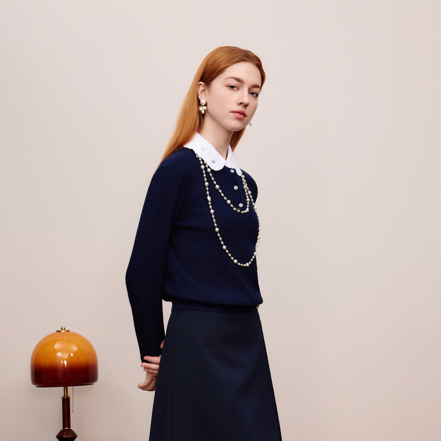 莱茵福莱尔云柔软纱套头polo领女针织衫复古学院风毛衣开衫秋冬