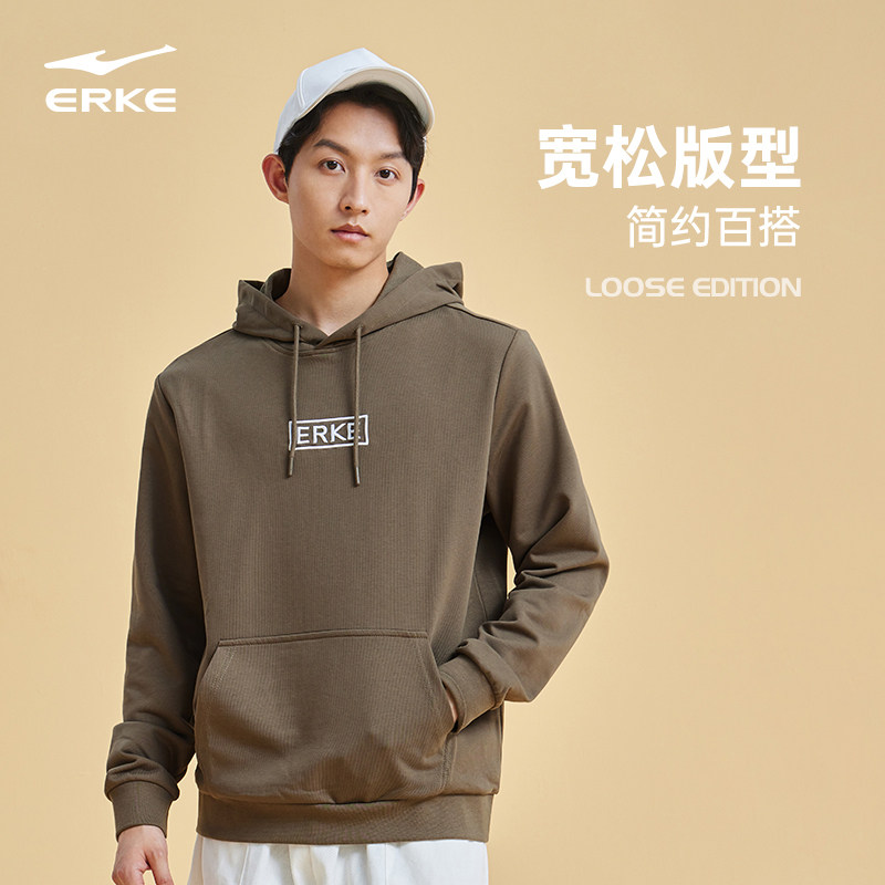 鸿星尔克卫衣男春秋男士潮流复古运动休闲套头连帽卫衣帽衫男上衣