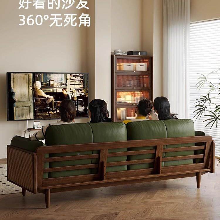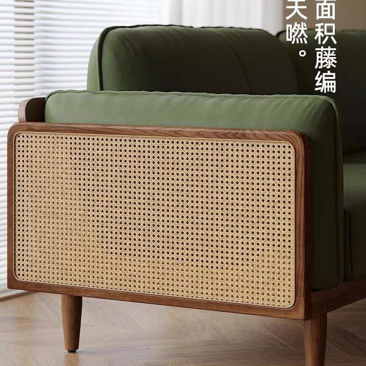 健匠沙发日式户型客厅家用北欧白蜡木藤编皮艺布SF-8032小实艺木