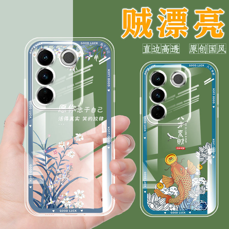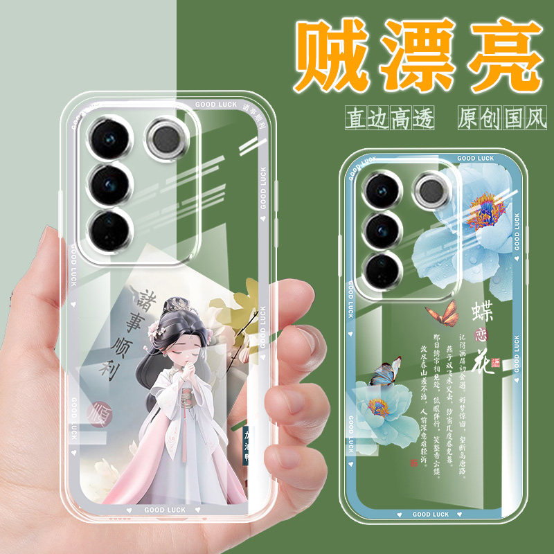 直边透明vivos16手机壳女新款硅胶vivo s16手机套中国风薄vivos16e软壳保护套男网红文艺全包防摔送钢化膜