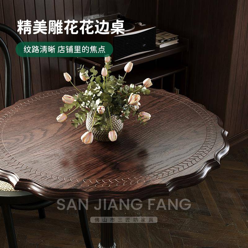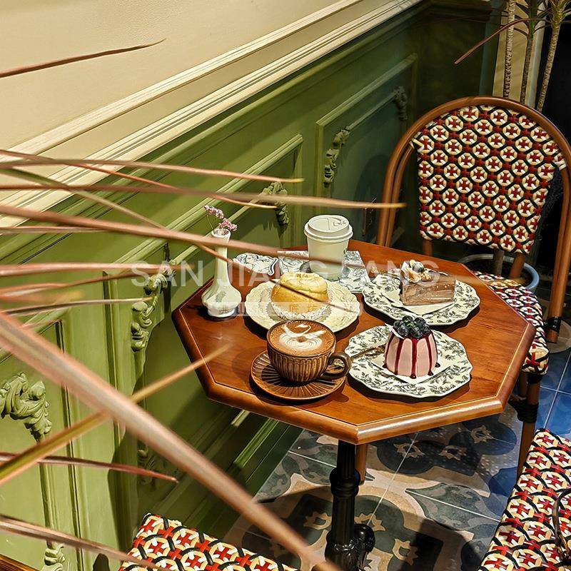 美式网红咖啡厅奶茶店实木桌椅组合复古烘焙蛋糕店红橡木方形桌子