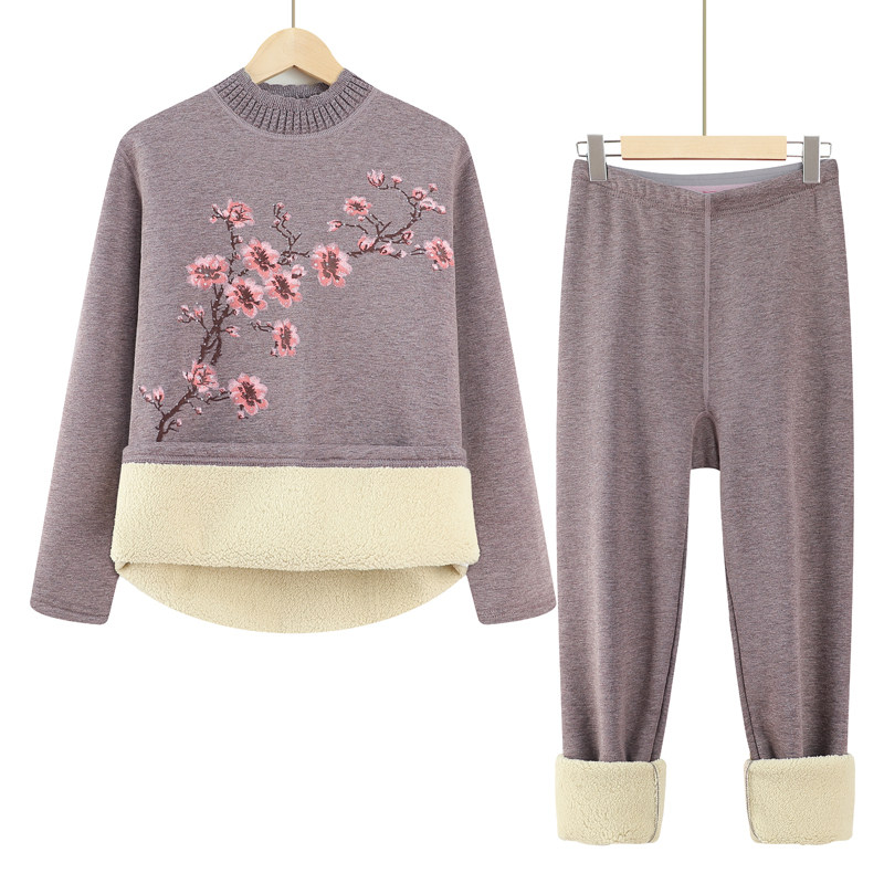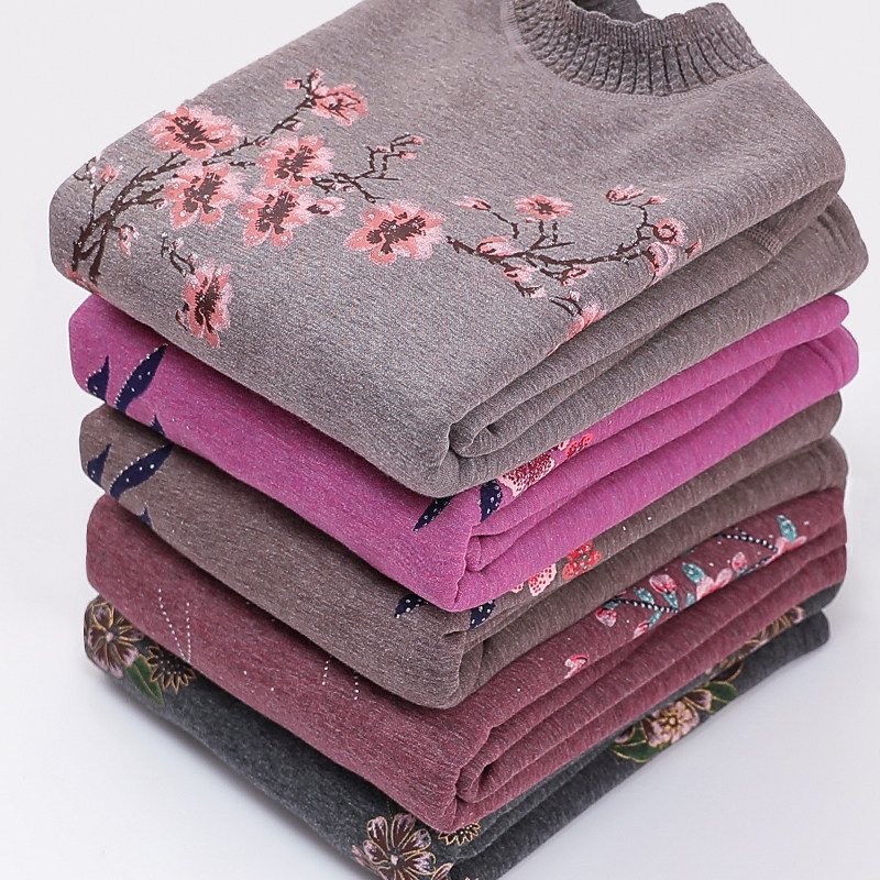 中老年人秋冬保暖内衣套装女奶奶冬装衣服加绒加厚妈妈打底两件套