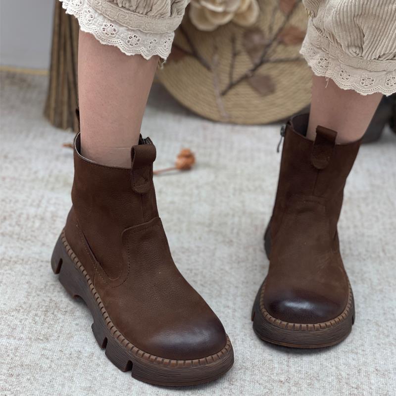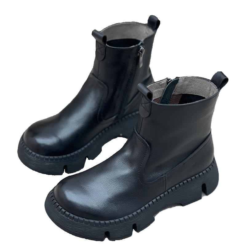 手工真皮马丁靴新款复古短靴子厚底增高女鞋短筒单靴加绒妈妈鞋