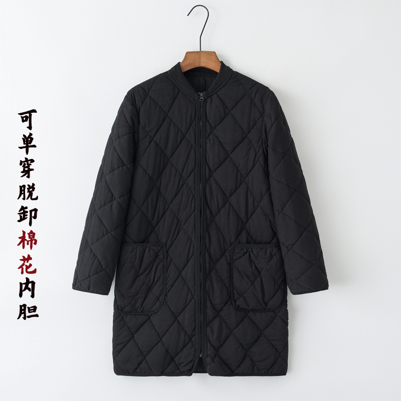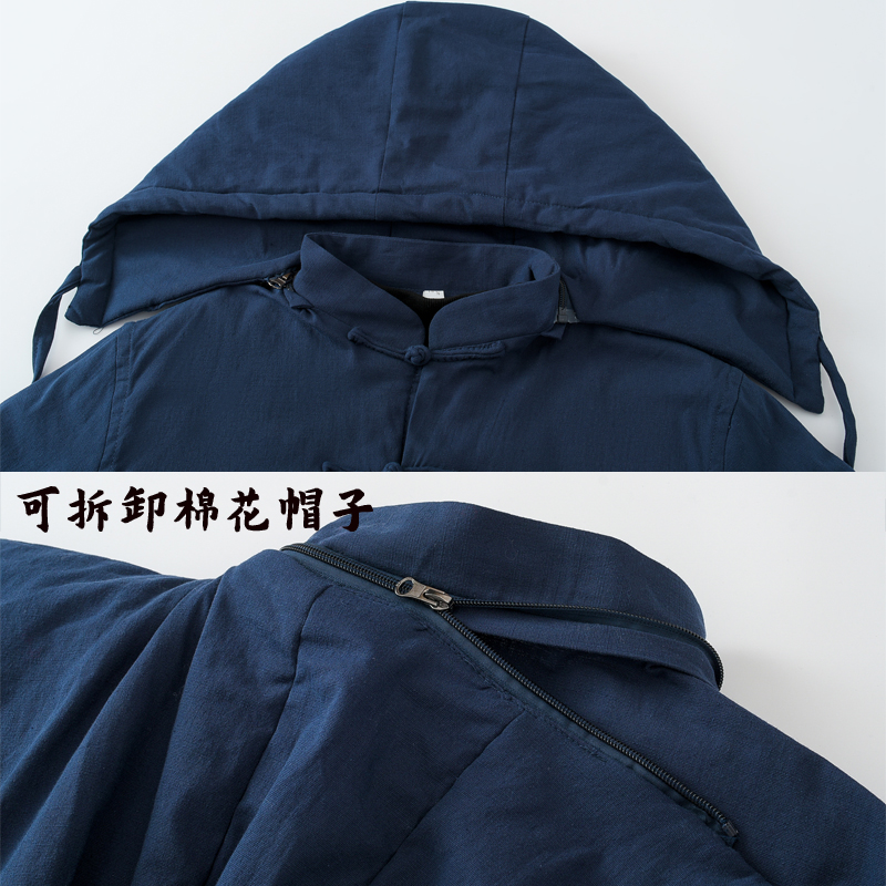 中长款棉袄冬季加厚棉花棉袄唐装男棉服保暖大衣连帽长款棉衣男