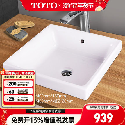 TOTO台上盆LW1714B正方形卫生间陶瓷桌上洗脸洗漱盆洗手台盆 (07)