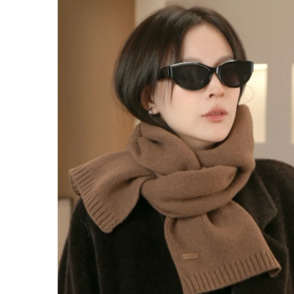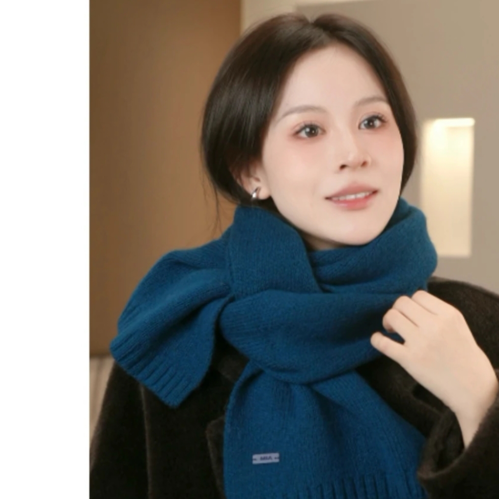 纯羊毛围巾针织纯色围脖女秋冬加厚保暖百搭2025新款围巾舒适柔软