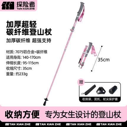探险者碳纤维折叠登山杖女款专业户外徒步爬山装备碳素超轻登山棍