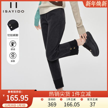 傲丝度黑色直筒高腰显瘦烟管裤子女冬季加绒牛仔裤小个子休闲裤