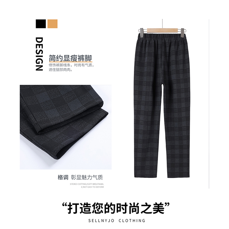 中年妈妈春秋裤子女新款格子休闲直筒裤中老年女裤加绒加厚保暖裤